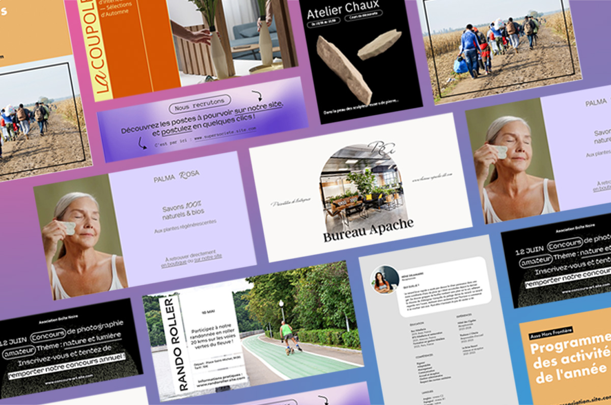 Création de templates pour divers formats fixes et animées, sur toutes les thématiques possibles & inimaginables mais toujours avec un regard non excluant & non sexiste.