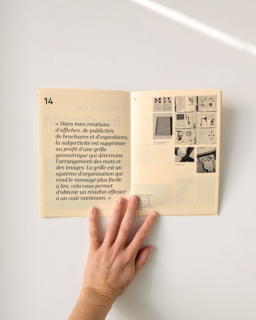 — Une première étape pédagogique où l'on présente de nombreuses références sur l'utilisation des grilles dans le design graphique, puis dans d'autres pratiques manuelles
